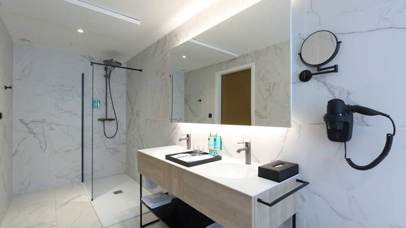De zeer ruime Junior suites (46 m²) zijn voorzien van 1 tweepersoonsbed of 2 eenpersoonsbedden, gratis WiFi, telefoon, extra grote flatscreen-tv, thee- en koffiefaciliteiten, minibar, bureau, laptopkluisje, kast, airconditioning en badkamer met inloopdouche, ligbad, toilet, haardroger en gratis toiletartikelen.