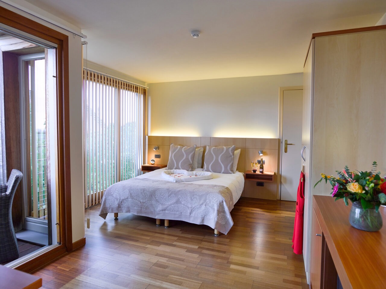 Deze ruime Standaard kamers (24 m²) bieden uitzicht op de tuin en zijn voorzien van terras, 1 tweepersoonsbed of 2 aparte bedden, wifi, airconditioning, flatscreen televisie, minibar, kluisje, bureau, zithoek, telefoon, koffie- en theefaciliteiten, radio, wekker, verwarming en badkamer met bad of douche, toilet, wastafel, haardroger en gratis toiletartikelen.