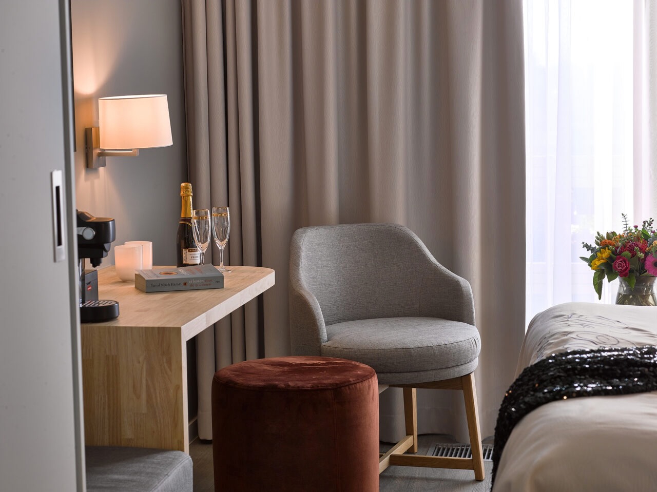 De ruime Standaard kamers (24 m²) zijn voorzien van 1 tweepersoonsbed of 2 aparte bedden, wifi, airconditioning, flatscreen televisie, minibar, kluisje, bureau, zithoek, telefoon, koffie- en theefaciliteiten, radio, wekker, verwarming en badkamer met bad of douche, toilet, wastafel, haardroger en gratis toiletartikelen.