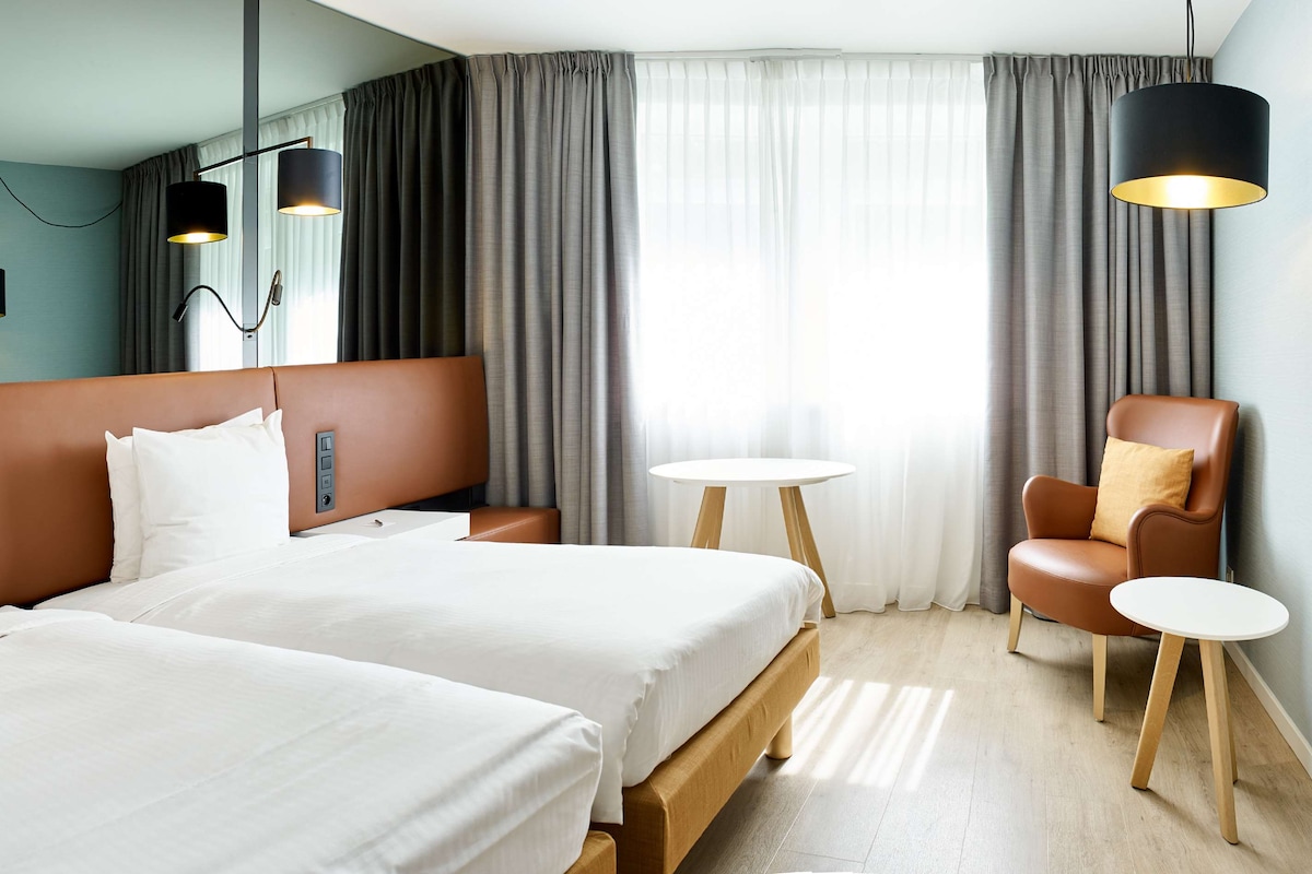 De Standaard kamers (24 m²) hebben uitzicht op de binnenplaats en zijn voorzien van 2 eenpersoonsbedden of 1 tweepersoonsbed (queensize), flatscreen televisie, wifi, bureau, zithoek, individueel regelbare klimaatbeheersing, minibar, kluisje, koffie- en theefaciliteiten, radio, verwarming en badkamer met regendouche, toilet, wastafel, haardroger en gratis toiletartikelen.