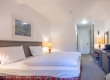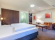 De ruime Luxe kamers (34 m2) zijn voorzien van 1 tweepersoonsbed, bureau, kluis, televisie, wifi, make-up spiegel, slaapbank en badkamer met douche, toilet, wastafel en haardroger.
