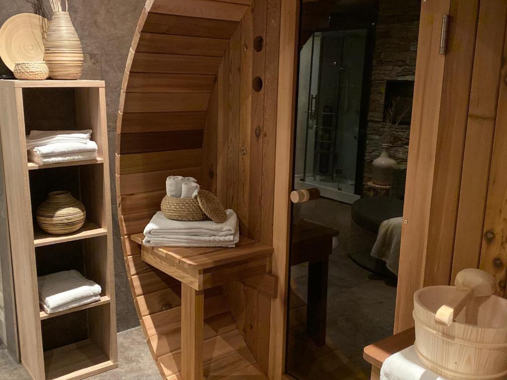 Het Wijnvat Wellness Royal beschikt over een ligsauna en infraroodsauna. De zitkamer is hier tevens wellness-ruimte, met een comfortable duo-relax-bank, douche met sunshower, een tweepersoons binnenjacuzzi en een apart toilet. Verder voorzien van tweepersoonsbed, zitgelegenheid voor het wijnvat, smart televisie, wifi, love seat, voerverwarming, koffie- en theefaciliteiten, flesje rode wijn, koelkastje, wastafel, haardroger en toiletartikelen.