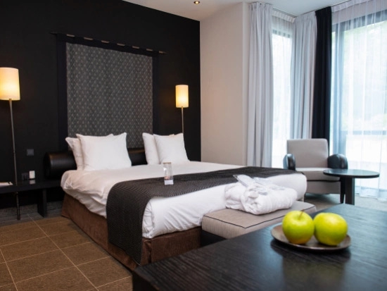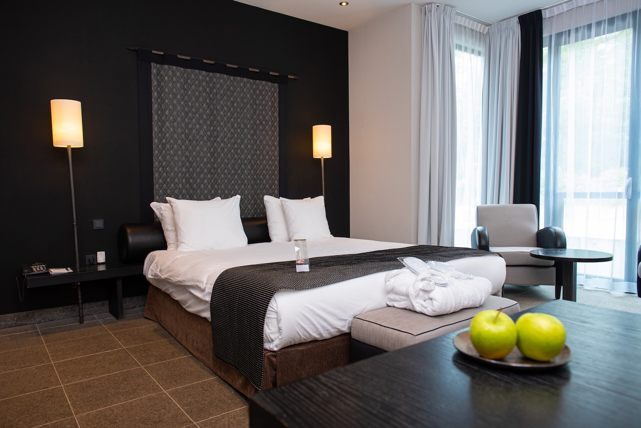 De luxe hotelkamers zijn zeer ruimtelijk en comfortabel opgezet waarbij veelvuldig gebruik is gemaakt van natuurlijke materialen. De kamers zijn uitgerust met 1 kingsize bed of 2 aparte bedden, vloerverwarming, klimaatbeheersing, LCD-tv, werk-leestafel, laptopsafe, design badkamer met inloop duo-douche, apart ligbad en toilet. Ze beschikken allemaal over een balkon of loggia en gratis WiFi.