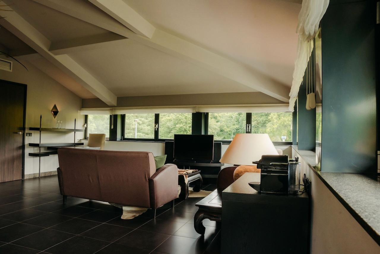 Op de derde verdieping, in de toren, bevindt zich de zeer luxe Torenkamer (50m2). Een grote semi-suite met een bijzonder ontworpen indeling en uitzicht over het bos aan de achterzijde van het hotel.
