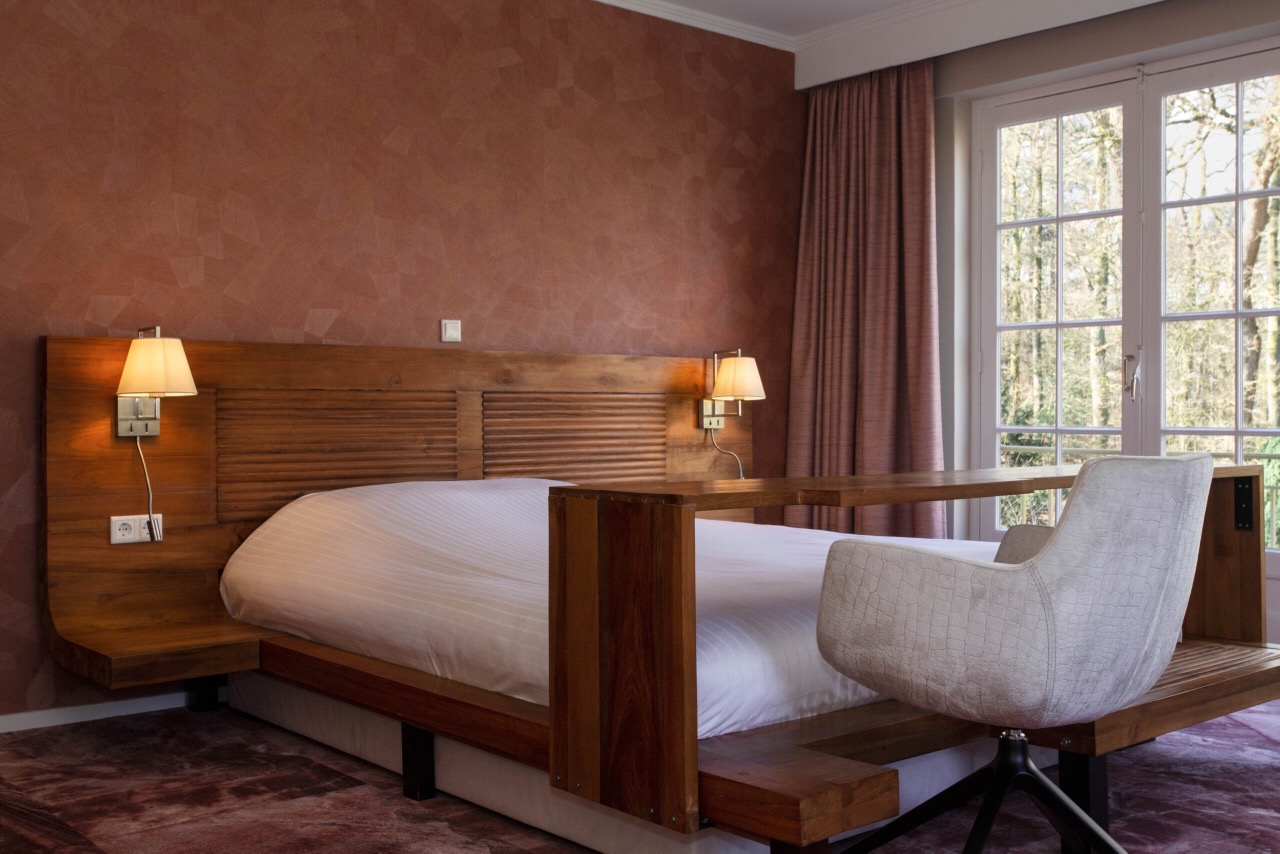 De fraai gestoffeerde Luxe kamers (25 m²) bieden uitzicht op de tuin en zijn voorzien van 1 tweepersoonsbed, zithoek, flatscreen televisie, radio, koffie- en theefaciliteiten, minibar, wifi, kluisje, bureau, verwarming, telefoon, kast en badkamer met bad, douche, toilet, wastafel, haardroger, sloffen en gratis toiletartikelen.