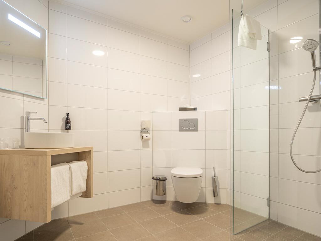 Deze ruime, sfeervol en comfortabel ingerichte Familiekamers (ca. 40 m2) zijn voorzien van balkon, 1 tweepersoons of 2 eenpersoons boxspringbedden, televisie, zitje, wifi, kluisje, koffie- en theefaciliteiten en badkamer met bad, douche, toilet, haardroger en toiletartikelen.