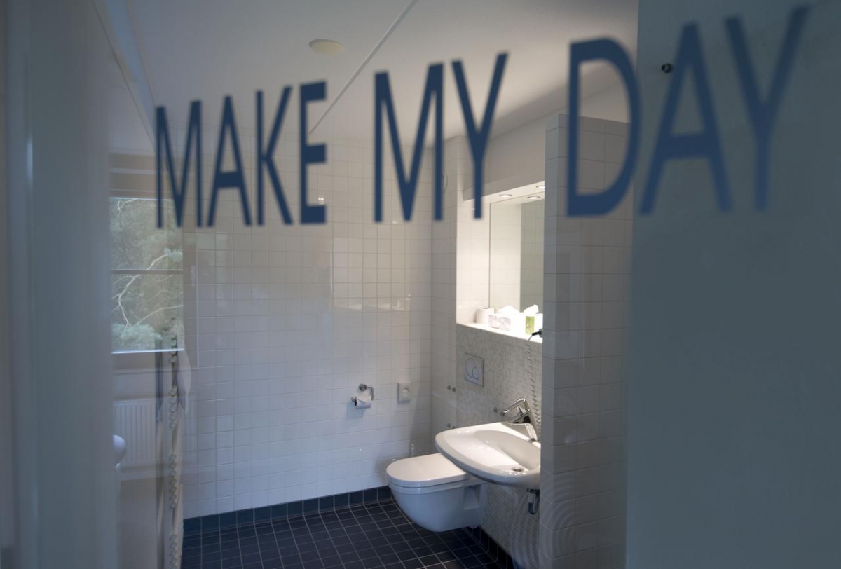 De Make-My-Day kamers (24 m²) hebben een prachtig uitzicht op het bos en zijn voorzien van unieke kunstwerken, 2 boxspring bedden (0.90 x 2.10m), ecologisch fairtrade bad- en bedlinnen, bureau, gratis WiFi, kluisje, flatscreen-tv, telefoon, radio, verwarming, wekker, koffie- en theefaciliteiten en badkamer met douche, toilet, haardroger en toiletartikelen.