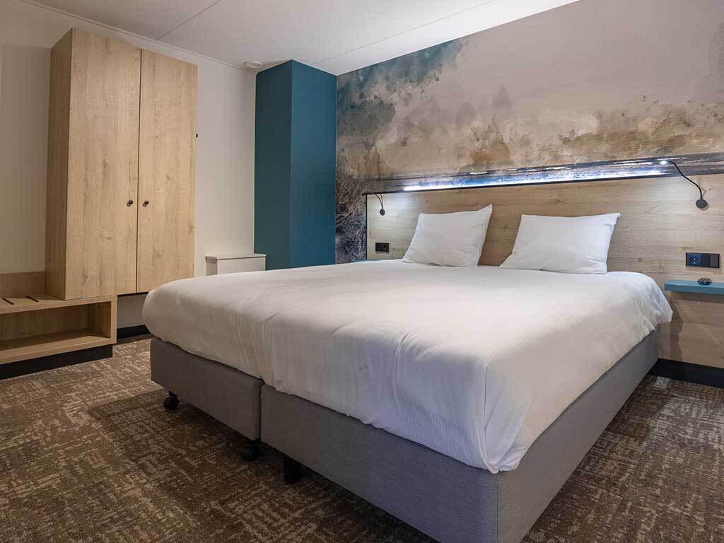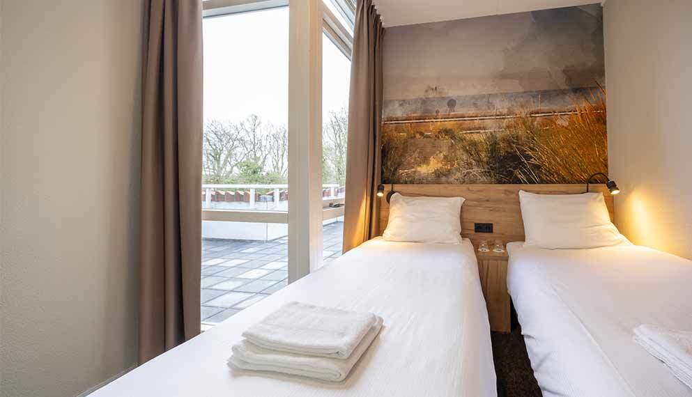 De Luxe kamers (26 m2) zijn voorzien van balkon, 2 éénpersoonsbedden, telefoon, televisie, wifi, zitje, kluisje, koffie- en theefaciliteiten en badkamer met douche, toilet, wastafel, haardroger en toiletartikelen.