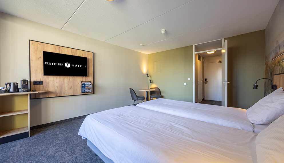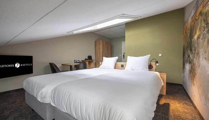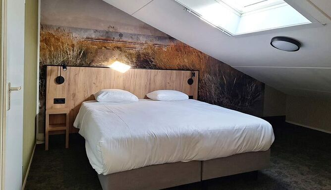 De kleine tweepersoonskamers (20 m2) hebben door het schuine dak een intieme indeling en zijn voorzien van 2 eenpersoonsbedden, televisie, wifi, zitje, koffie- en theezetfaciliteiten en badkamer met inloopdouche, toilet, wastafel, haardroger en toiletartikelen.