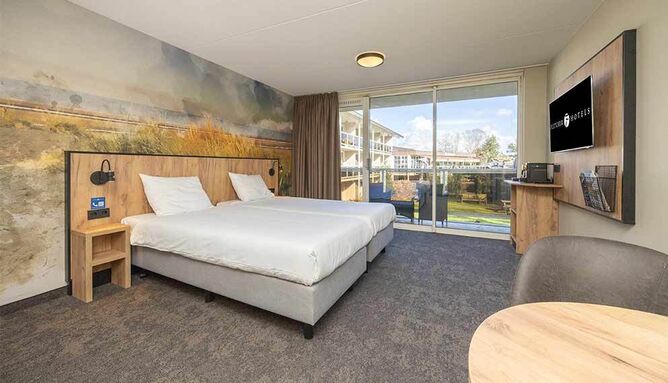 De Comfort kamers (24 m2) zijn voorzien van 2 eenpersoonsbedden, zitje, televisie, wifi, koffie- en theefaciliteiten, wekker, radio en badkamer met douche, toilet, wastafel, haardroger en toiletartikelen. De Comfort kamers op de begane grond hebben een terras.