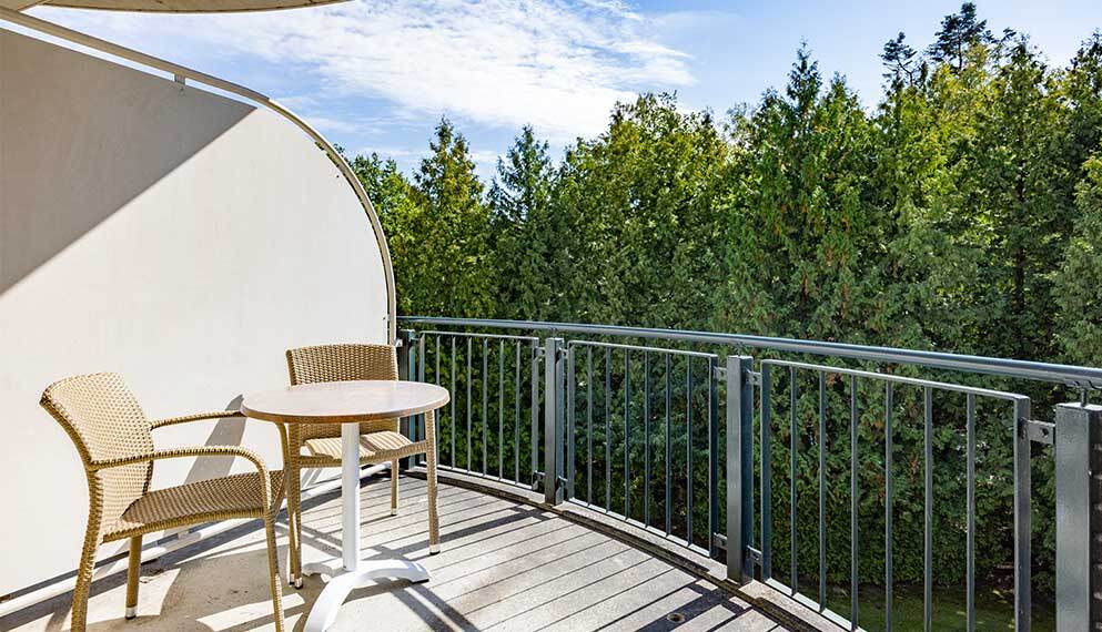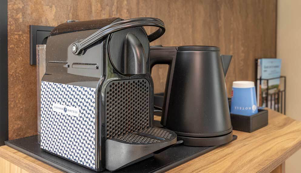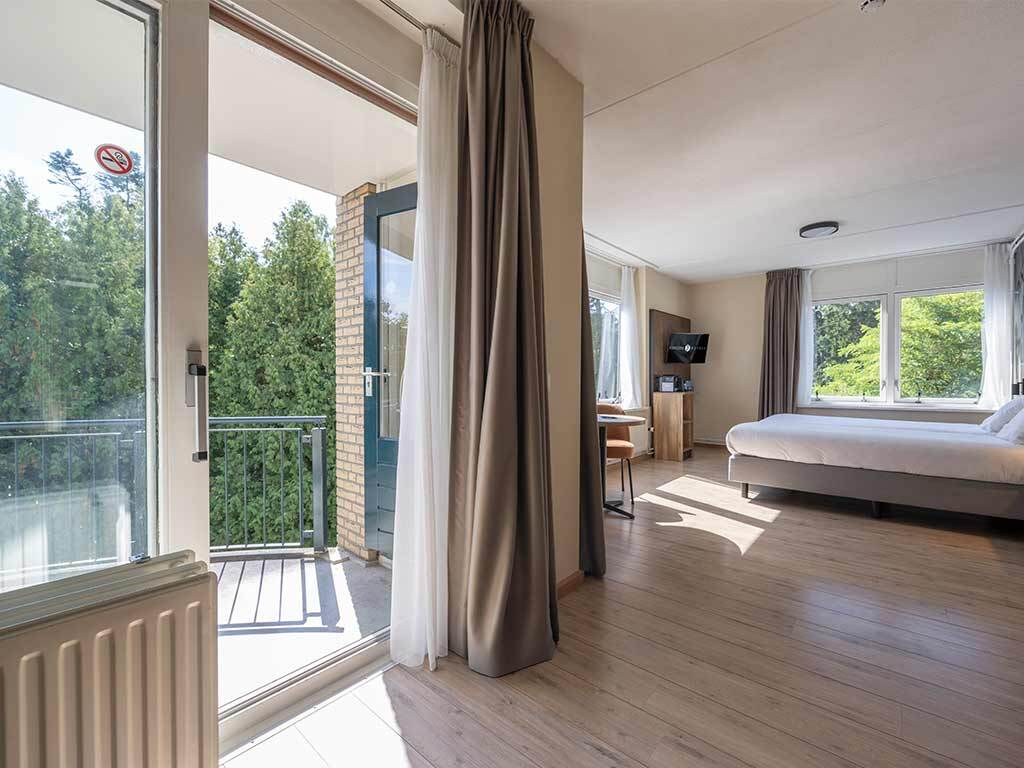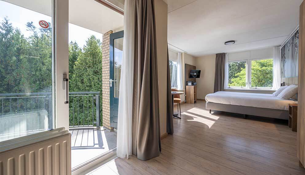 De ruime Luxe kamers (23 m2) zijn voorzien van balkon, 2 eenpersoonsbedden, televisie, bureau, wifi, kluisje, zithoek, koffie- en theefaciliteiten en badkamer met douche, toilet, wastafel en haardroger.