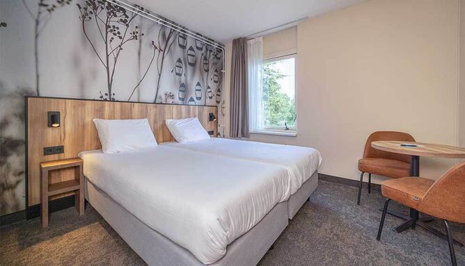 De Standaard kamers (17 m2) zijn voorzien van 2 eenpersoonsbedden, televisie, bureau, wifi, kluisje, zithoek, koffie- en theefaciliteiten en badkamer met douche, toilet, wastafel en haardroger.