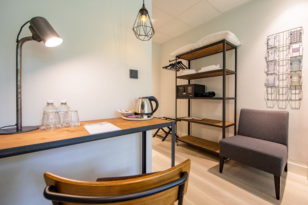 De ruimere Deluxe kamers (20m²) zijn voorzien van 1 tweepersoonsbed (kingsize), flatscreen televisie, wifi, koffie- en theefaciliteiten, bureau, kluisje, telefoon, radio, klimaatbeheersing, verwarming en badkamer met douche, toilet, wastafel, haardroger en gratis toiletartikelen. In deze kamer zijn huisdieren toegestaan.