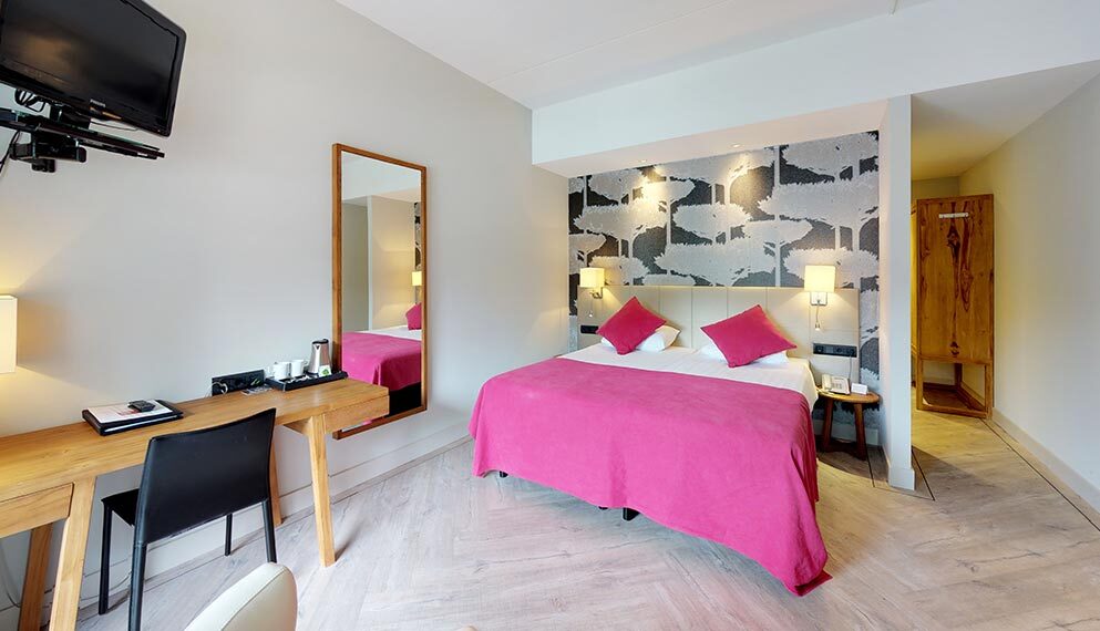 De ruime Luxe kamers (30 m2) zijn voorzien van 2 eenpersoonsbedden of 1 kingsize tweepersoonsbed, televisie, bureau, zithoek, wifi, telefoon, kluis, koffie- en theefaciliteiten, klimaatsysteem en badkamer met bad, douche, toilet, wastafel, haardroger en gratis toiletartikelen.
