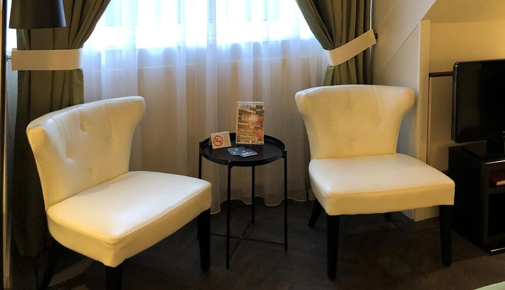 De sfeervolle, luxe Suites zijn voorzien van 1 kingsize tweepersoonsbed, televisie, bureau, ruime zithoek, wifi, telefoon, kluis, koffie- en theefaciliteiten, klimaatsysteem en grote open badkamer met bad, douche, toilet, wastafel, haardroger en gratis toiletartikelen.