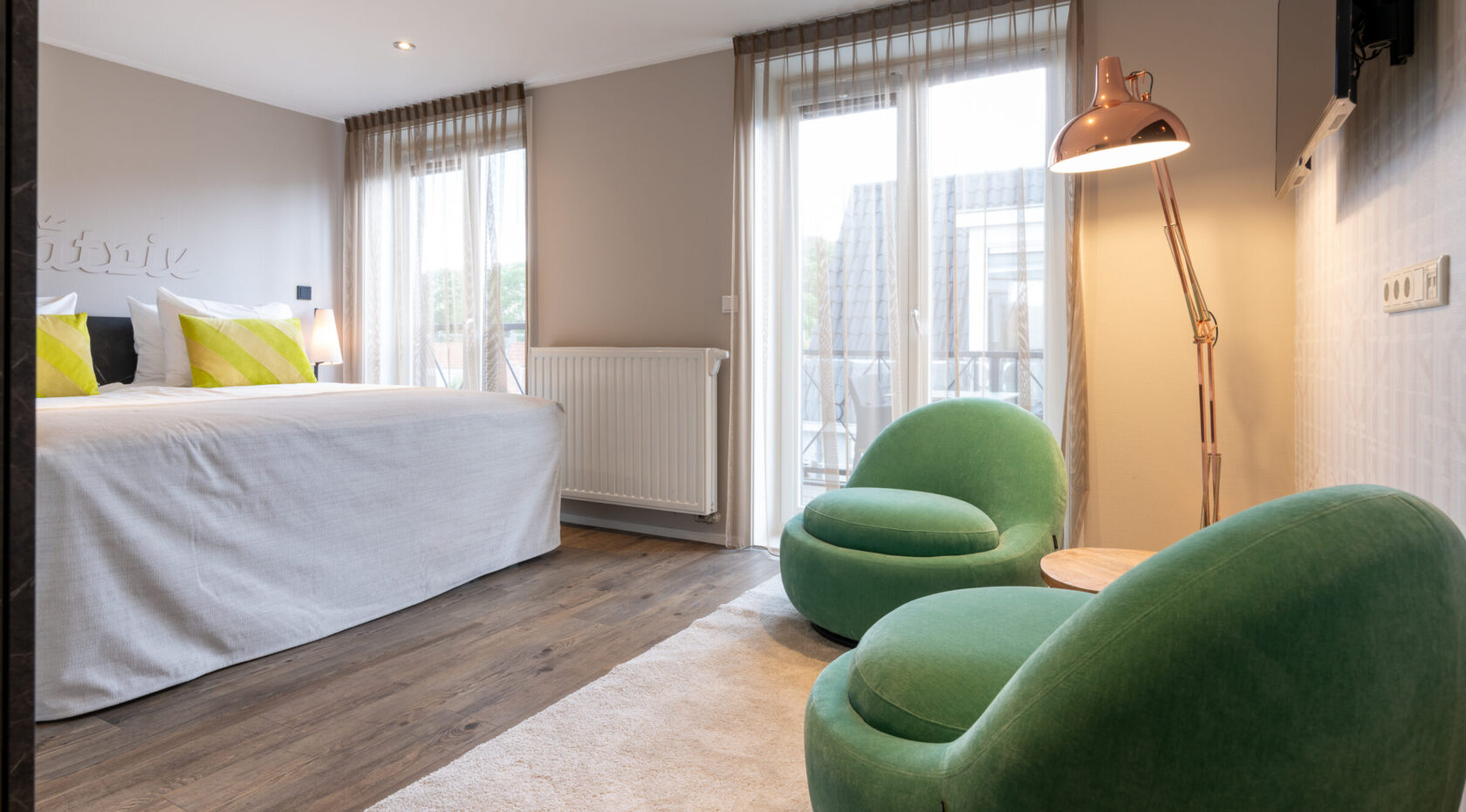 Alle luxe kamers en suites van Juuls Domburg liggen op de 1e en 2e verdieping en zijn smaakvol en modern ingericht. Er is geen lift in het hotel.