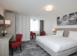 Deze moderne en comfortabel ingerichte Comfort kamers zijn voorzien van een tweepersoonsbed, flatscreen televisie, bureau met zitje en badkamer met douche, wastafel en toilet.