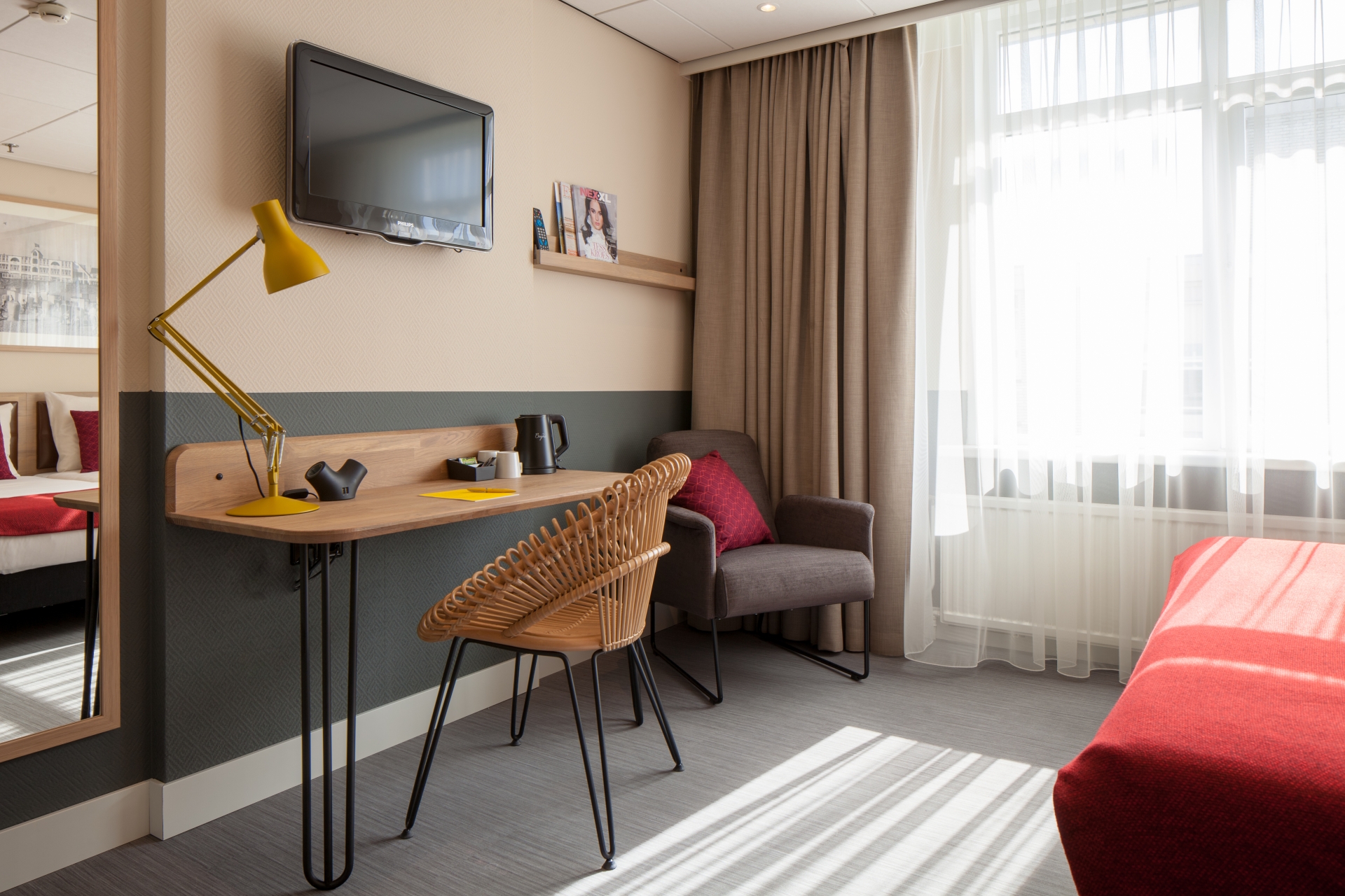 De Standaard kamers aan de landzijde (16 m²) zijn voorzien van 2 eenpersoonsbedden, flatscreen tv, wifi, bureau, kluisje, koffie- en theefaciliteiten, badkamer met douche, toilet, wastafel, haardroger en gratis toiletartikelen (bereikbaar per lift).